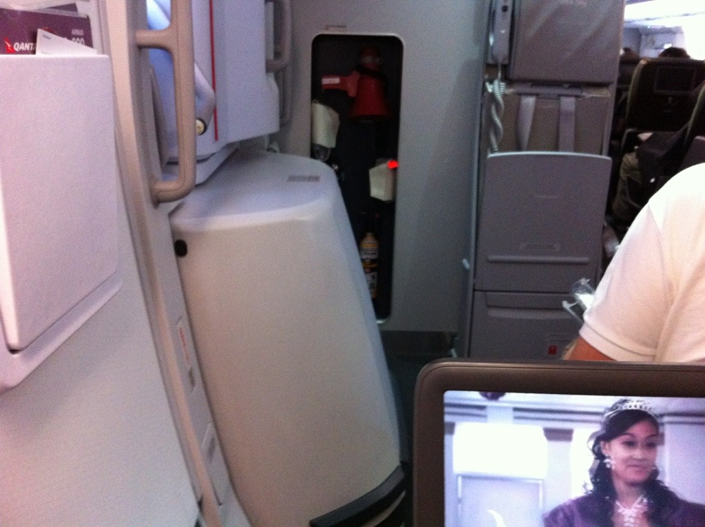 The first meal service come after an hour or so of the 8hr 45min flight and although it sounds delicious, the taste is somewhat different. The feta, sun dried tomato, and rocket salad works, as does the Shiraz and surprisingly soft, fresh roll, but the main beef Ragu, mash, ad boiled veges needs work. A further meal service of vegetarian pizza came an hour prior to landing.