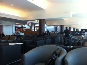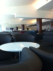 This lounge just seems to get bigger and bigger each time I enter. This could be due to the fact that is is only around 50% occupied today. The hot food isn’t too bad – a penne pasta with a spinach and cheese sauce. Even the coffee is stronger than usual. And there seems to be more snack-type morsals such as a delicious date and caramel slice….