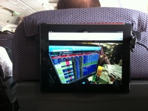 OK – back to the review. Whilst the iPads are a great idea, and a profit boost for Apple, they do take a while to load and ‘stream’ programs for viewing. Other than that it is a pretty stress-free flight and the attendants are smiling today 🙂