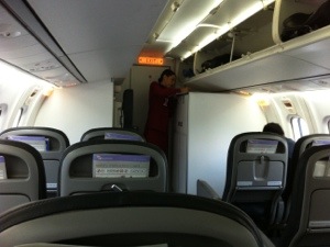 I like to get off a plane as quickly as possible so choose an aisle seat on the last row (row 17) during my online check-in. Unfortunately when I hand over my boarding pass to board the plane at the gate there is a ‘beep beep’ and a flashing red light. “Oh Mr.