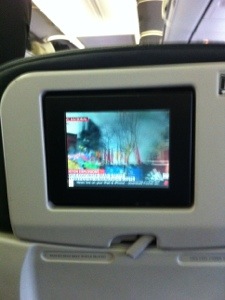 So happy this plane, a Boeing 737-800, which has personal video screens – and they are free. Such a rarity these days when I fly Virgin.