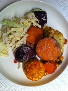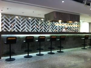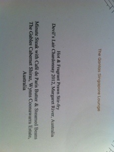 This would have to be the BEST lounge I have ever been in – a Qantas lounge wow – so impressed. The food is amazing, the service wonderful, the drinks phenomenal – they have cocktails! I chose the ‘Monkey’ – a signature cocktail with a Vodka base. And Verve is flowing people! I sample the buffet, and order both the A La Carte options – ‘Hot and Fragrant Prawn Stir fry’ and ‘ minute Steak with Cafe de Paris Butter and Steamed beans’ – lord I am full and I haven’t even sampled the desserts yet!!