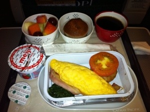 The meal itself it simple and filling. I choose the Western breakfast – typical bacon, omelette, hashed potato, roasted tomato, and spinach. This comes with a fruit salad, yogurt, a muffin, and tea or coffee.