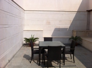 The friendly guy at reception tells me as a valued HHonors diamond member I have been upgraded to the top level room – The Terrace Suite – and what a suite it is – a huge bedroom with separate living room, 2nd toilet, and a massive outdoor terrace with large outdoor spa!