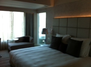 The room follows the light, bright, airy theme of the lobby and it is modern and equipped with all modern amenities including a Bose iPod doc, Nespresso machine, and 3 freshly backed chocolate chip cookies.