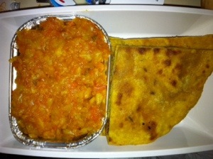 After the on-time departure, we are served drinks and shortly after a meal. I choose Indian vegetarian which is delicious.