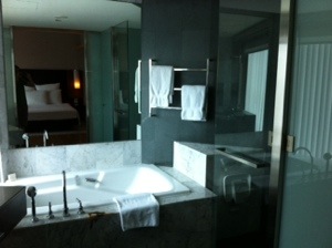 Upon entering the hotel which is a mirror image to Le Meridian next door, I make my way up to the 33rd floor’s Executive Lounge where I check-in to my King Executive (compact) Suite a floor below. I am offered a drink which I accept and shown to the light refreshments which makes for a tasty lunch.