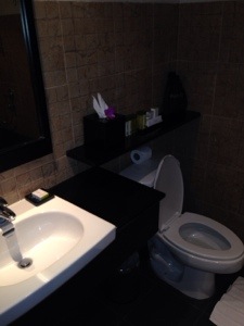 The hotel itself is probably a 3.5 – 4 star hotel with plenty of amenities, but something is lacking and I can’t quite pinpoint it. As we enter the hotel lobby at about 10pm, there are a number of guests literally sleeping on the sofas opposite the check-in desk which doesn’t present too well. The room, while well appointed, has a mildew-smell throughout, and some of the lights are not working. There is a fruit bowl and welcome letter from the hotel manager which is a nice, yet expected touch. Breakfast is mediocre – the quality is inferior to other Double Trees I have stayed in, the variety less; service is adequate but there are not enough staff to refill the dishes and clear the tables. As an HHonors Diamond member I receive it for free so shouldn’t really complain but I definitely wouldn’t pay for it.