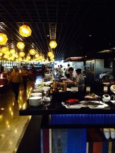 The next morning after a well deserved deep sleep, I eat my complimentary breakfast at the ground floor ‘Mosaic’ restaurant. It is stunning from an artistic perspective – framed art literally gutters the walls and beautiful netted lights dot the ceiling. The food is quite good and replenished regularly.
