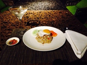 Complimentary drinks are served from 6 – 8pm for Gold and Diamond HHonors members at the pool bar on the 7th floor, and I order a couple of dirty Martinis and a noodle dish which I eat by the pool.