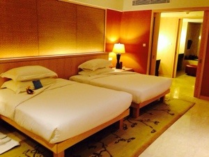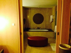 We arrive late, at about 9.30pm and are immediately told upon reception that as Diamond HHonors members we have been upgraded to a Conrad Suite, an exclusive cordoned-off area comprising of 55 suites. It is a maze to get there, a good 5 minutes from the open-air reception, and yes, it is a huge 2-room suite with balcony. There is a dining table, plates and cutlery, and even a juicer (!?) so essentially it is an apartment without a kitchen.