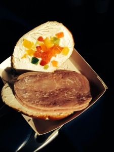 Being the first row to receive a meal is not always a good thing. Today the meal, a panini with meat, cheese, and capsicum is frozen throughout, so I literally leave it in the sunlight to thaw for 15mins. When I bite into it, it is soggy. Disgusting. The flight attendant brings me another and it is the same. Finally he offers me the vegetarian option which is better.