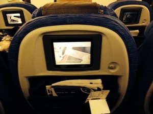 Dinner is Sate Chicken. Breakfast a Spanish omelette. Both are OK but nothing to rave about. The airline’s website states Business Class main meals for World Traveller Plus but as I make my way to the toilet after dinner I am sure Economy passengers are eating the same food…