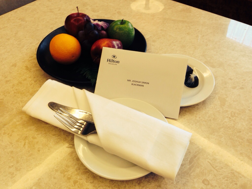 Check-in is smooth and upon receiving my key to my upgraded King Executive Suite on the 20th of 21 floors, I see another fruit platter, plate of chocolates, and personalised welcome letter from the hotel manager.