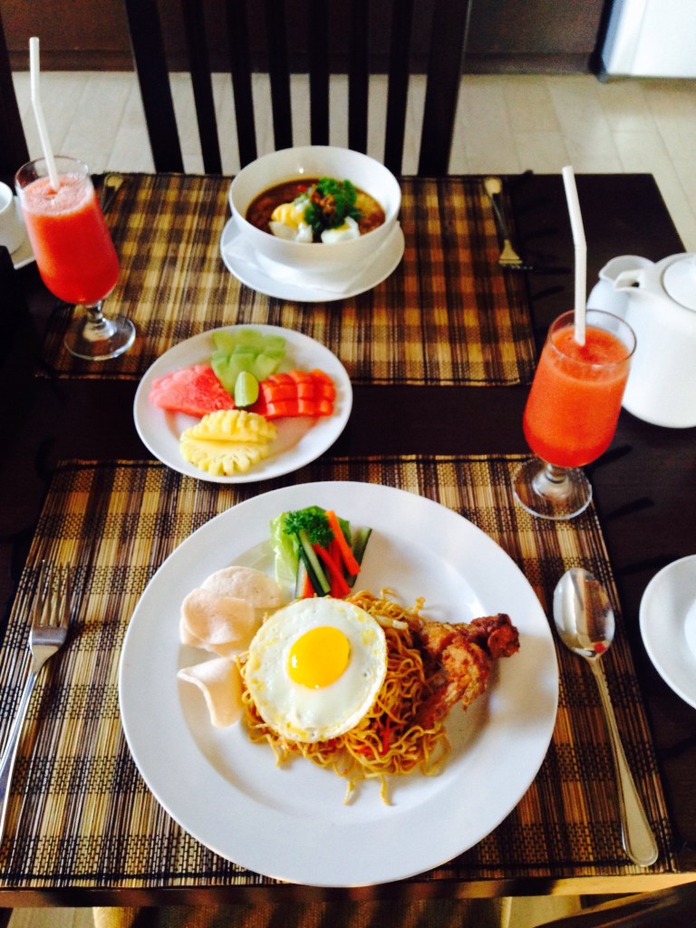 After a good night’s sleep in the king size bed we are woken up by an orchestra of roosters around 6.30am and venture outside an hour later to a delightful breakfast set up in the the dining area of our villa. Guests can choose from an extensive breakfast menu including Western and Asian meals simply by ordering the evening before by 10 PM.