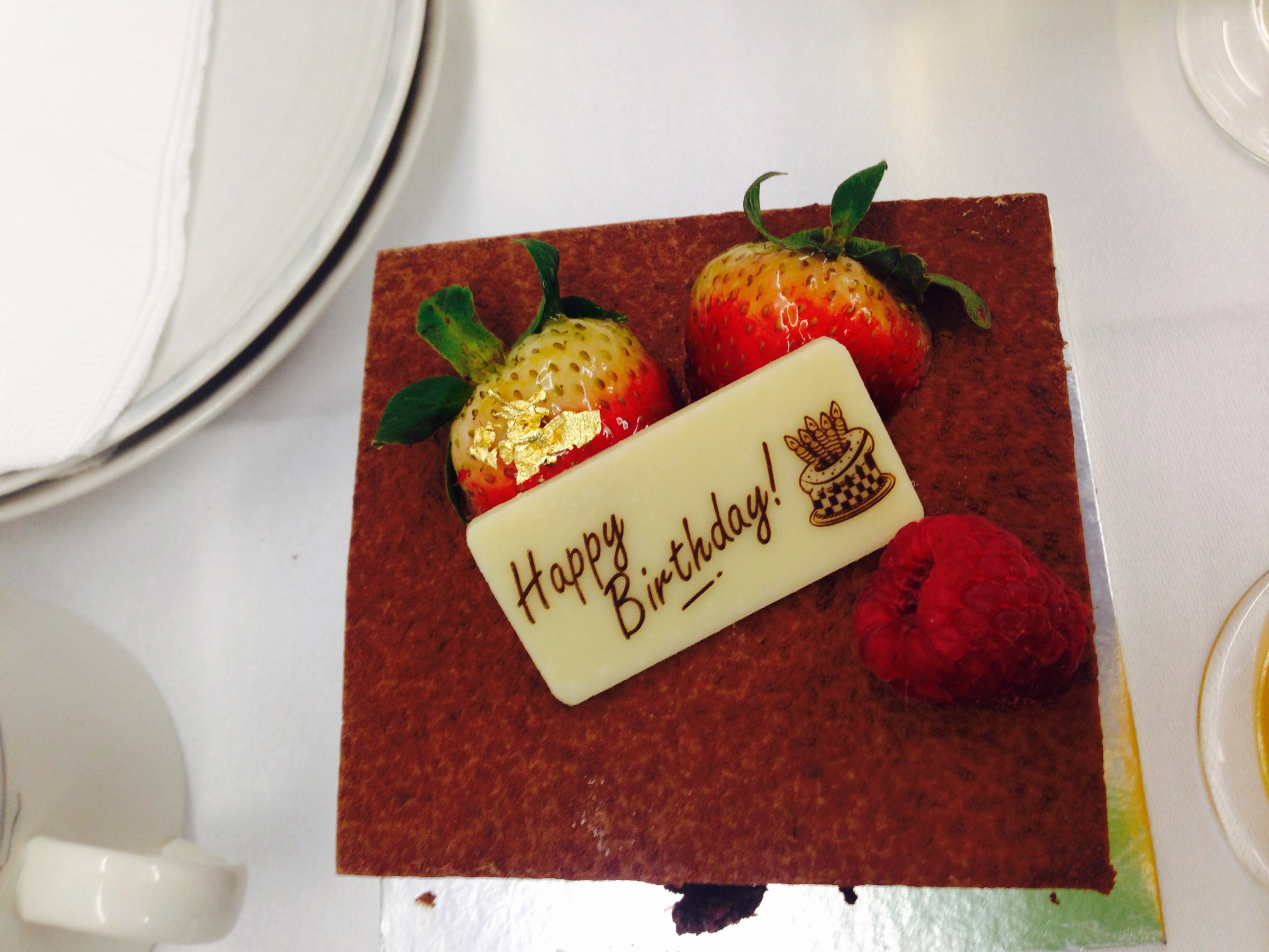 The birthday cake arrives for my partner’s 40th – a sweet touch with 2 glasses of Champagne, but I am truly full and only manage a spoonful (or two).