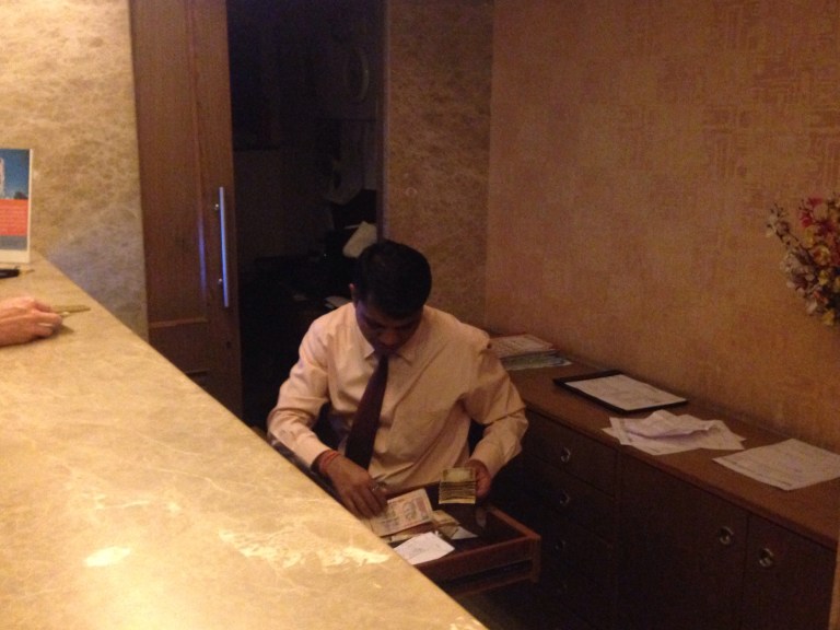 There is the obligatory security once-over as we enter the dark lobby and quickly check-in.