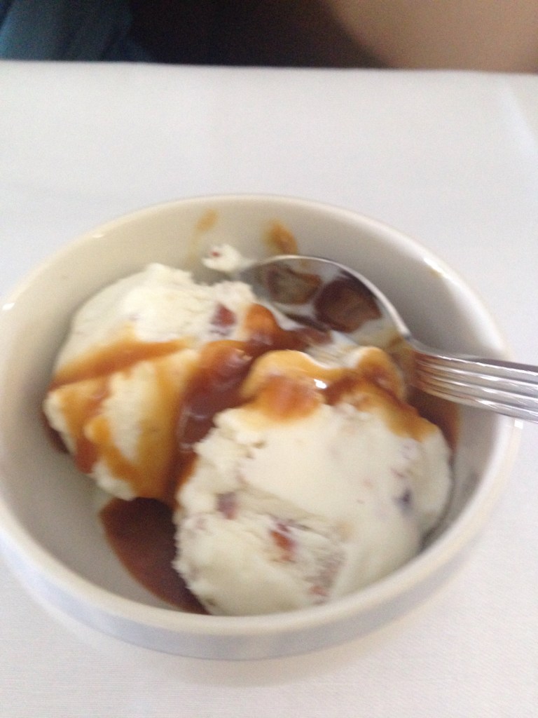 Lunch service comes at a snails pace, starting with chicken and mutton sate, Mediterranean platter, Laal Maas (A Rajasthani lamb dish), and then desserts – coconut and macadamia nut ice cream, fine pralines, and a coffee.