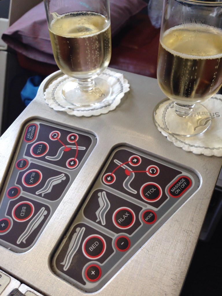My partner takes the coveted seat 1A so I take 1C – still the first row in Business class 🙂