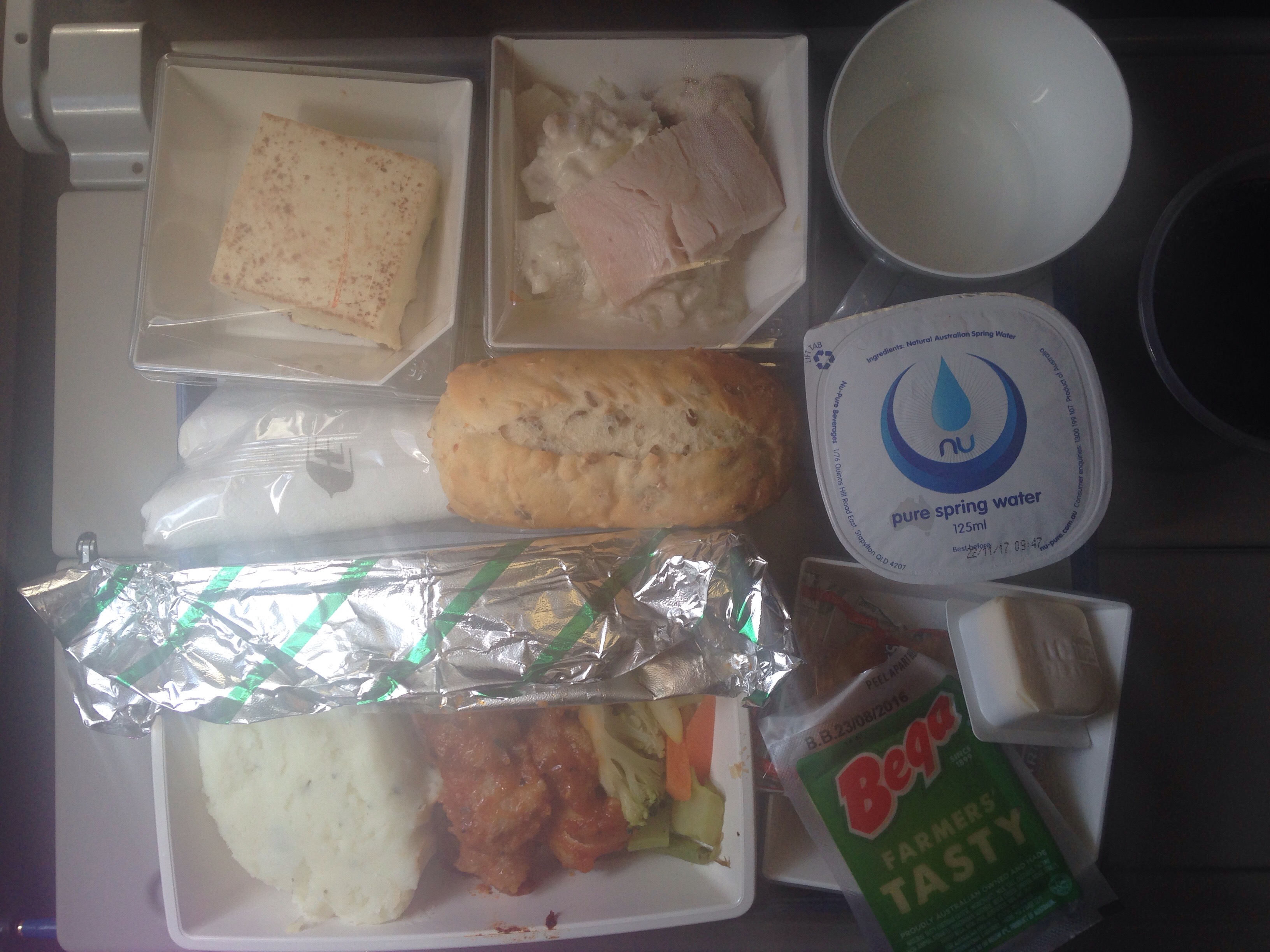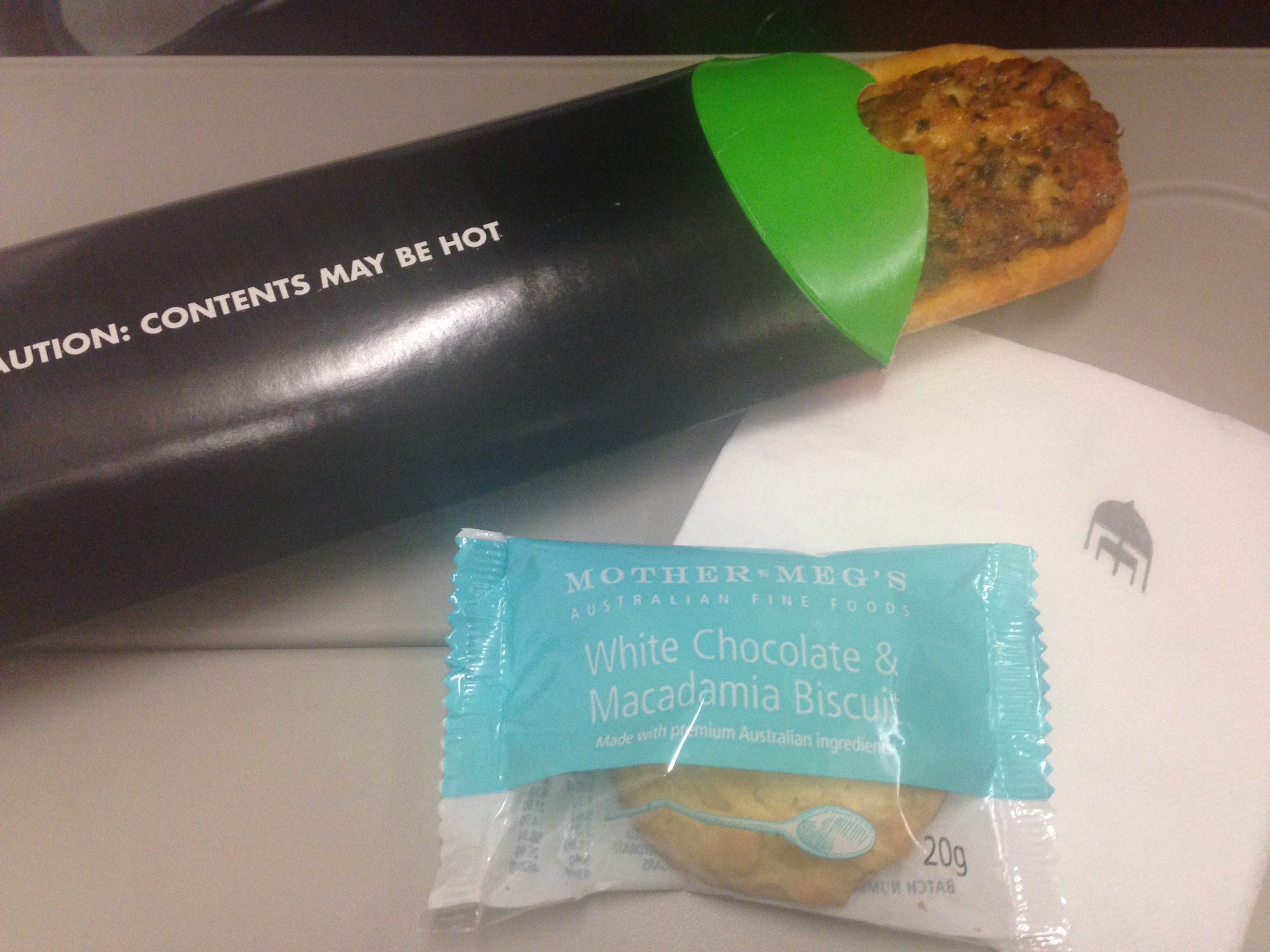 The meals are very good, and although I am not very hungry having had a delicious meal in the partner airline Qantas First lounge in Sydney, I do pick at my chicken and mashed potato main meal, and Chicken pizza snack towards the end of the flight.