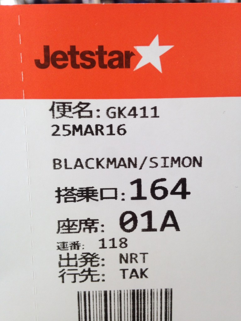 I have used a mere 7500 points plus 2000 yen instead of close to 20000 yen to purchase this ticket from Narita (Domestic) to Takamatsu on this Jetstar A320-200 aircraft.