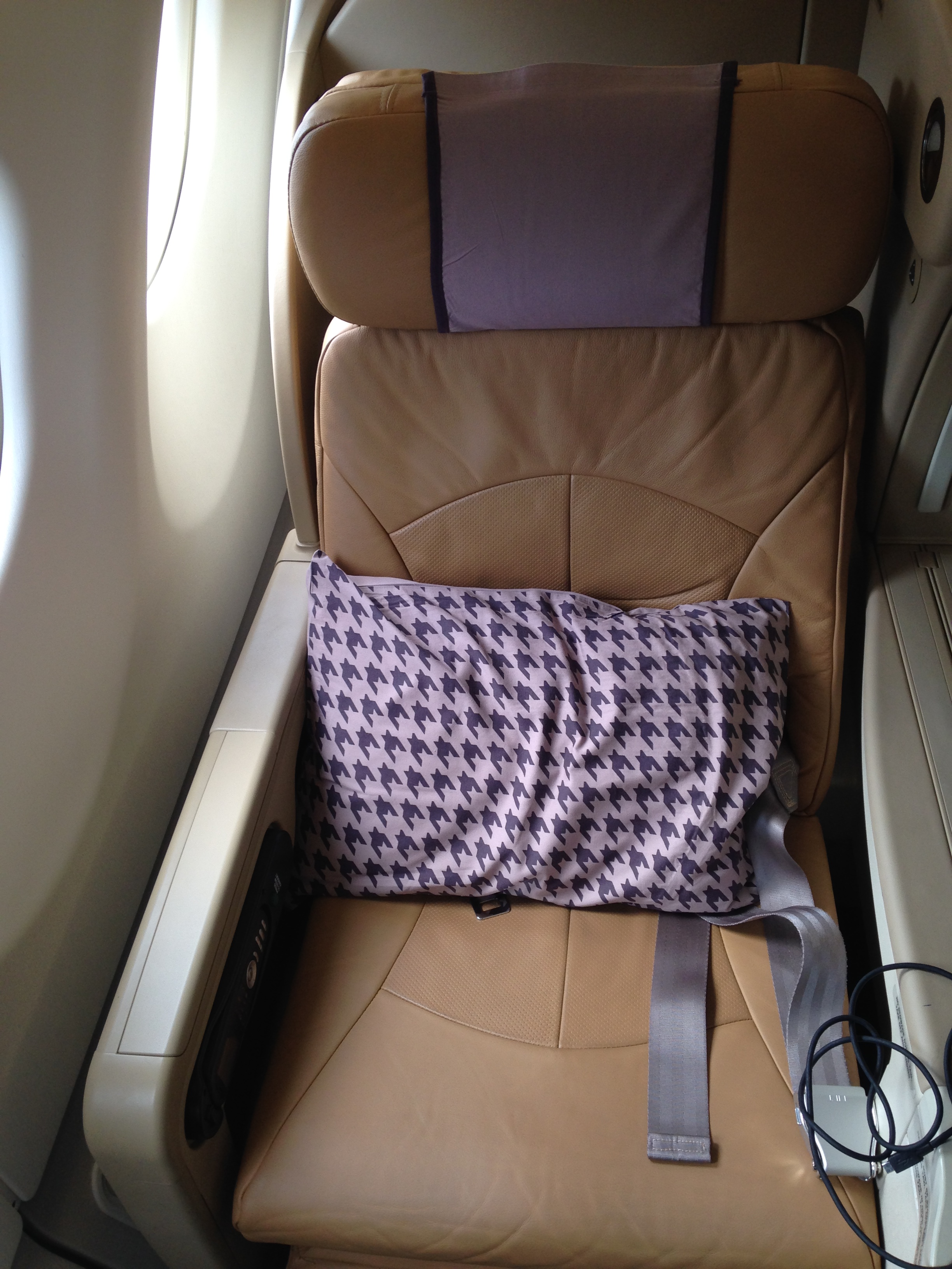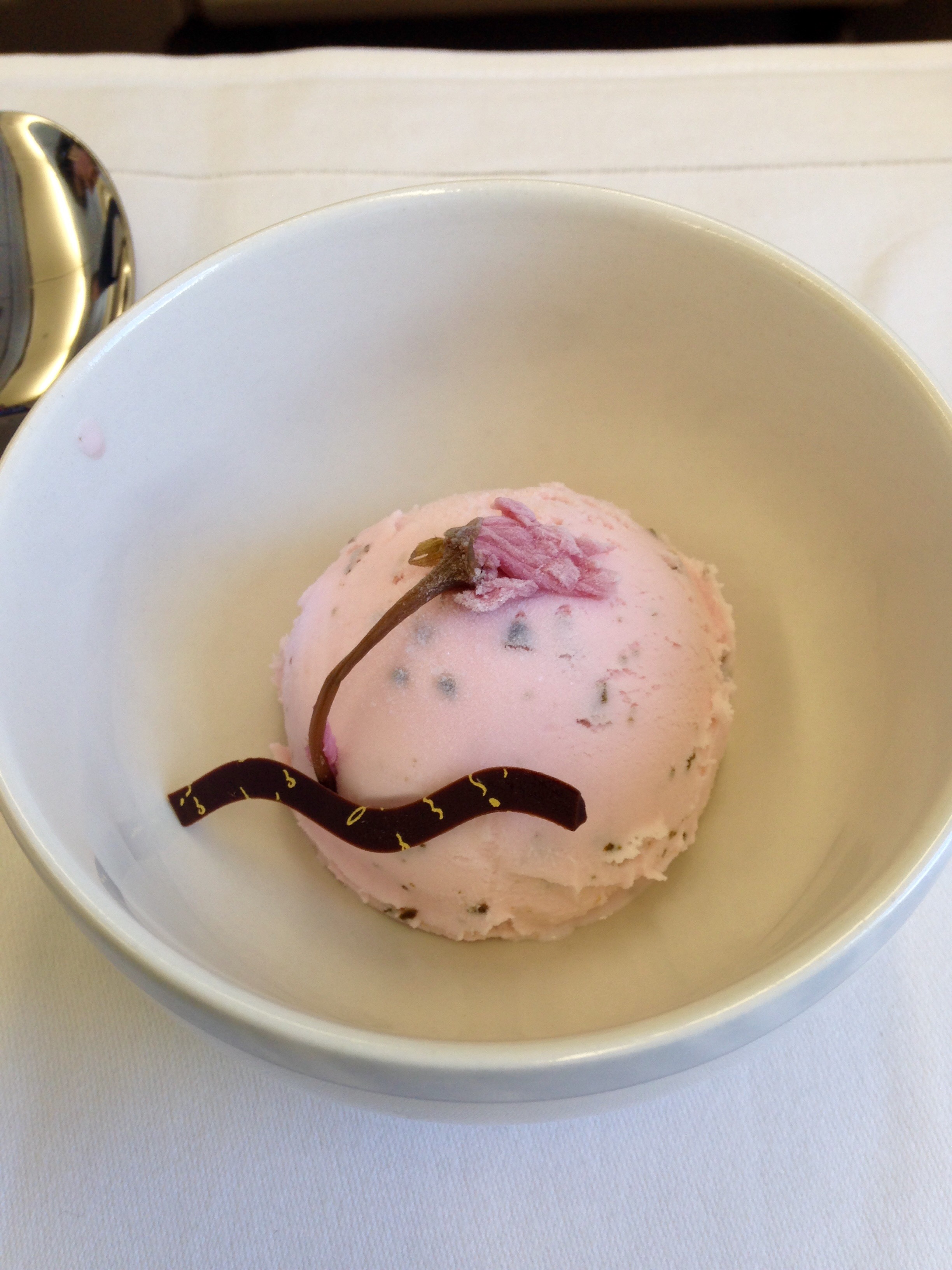 Hot towel, welcome Champagne, and post-take-off drink orders are quickly delivered, and before long the plane is in the air. My Singapore Sling quickly follows – the first of many drinks on this daytime flight.