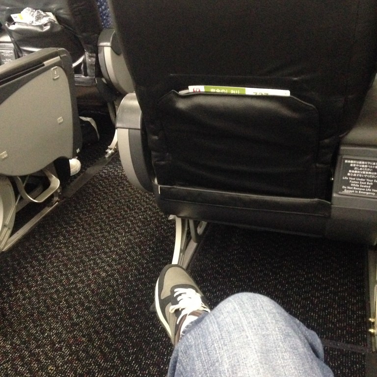 I am seated in an aisle seat in row 15 – the first row behind the ‘business class seats’ (at a mere YEN 1000 upgrade) on this Boeing 737-800 bound for Haneda. It’s amazing value considering the seat are more spacious, but the catch is, like Economy, no food is served. I specifically requested my seat as there is about 1.5 meters between my seat and the one in front.