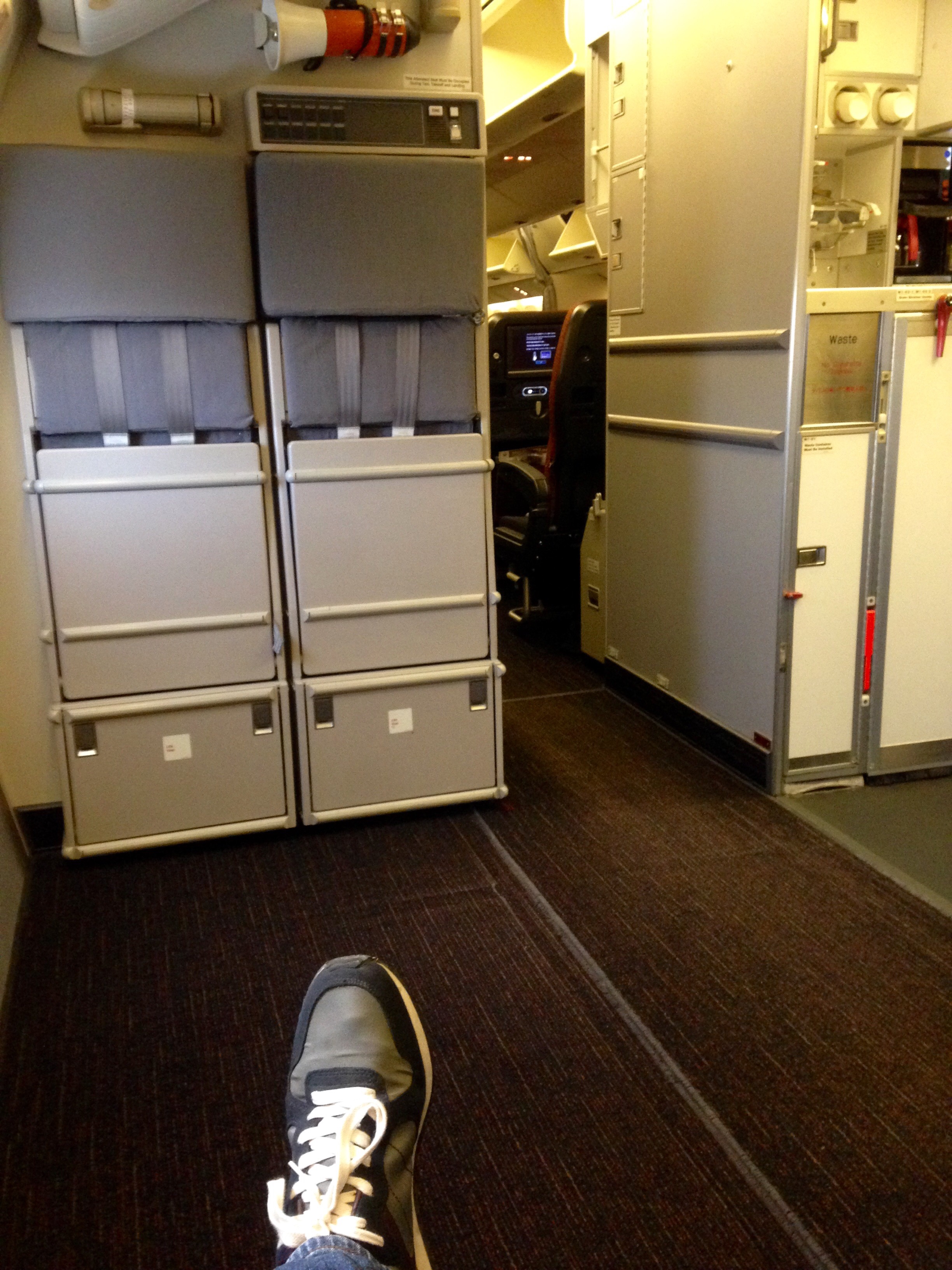 Again I am given seat 45A which at first look seems to be in the bowels of the aircraft but infact it is an overwinter Emergency Exit row window seat with an insane 3 meters of leg space in front of me. No complaints here: