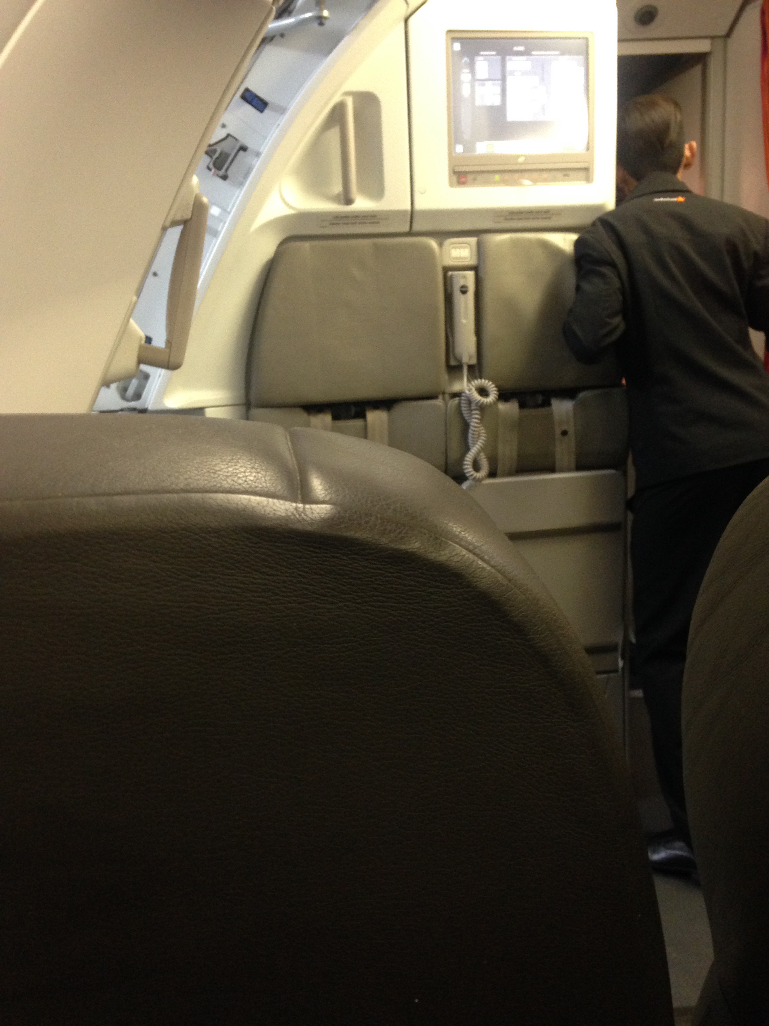 Soon after another row 2 passenger boards and is horrified that there is no space for her bag and argues with the flight attendant when he says the baggage compartment above row 1 are for row 1 passengers only. She ignores him and blatantly ignores him and shoves her bag in the row 1 baggage compartment. Needless to say a war of words follows and I am sure she will be kicked off but unfortunately isn’t. Needless to say a row 1 passenger boards with bag in tow and there is no space for him, but he graciously accepts the flight attendant’s request to have the bag stored further down.