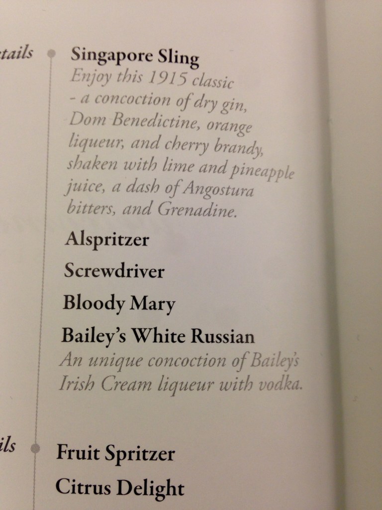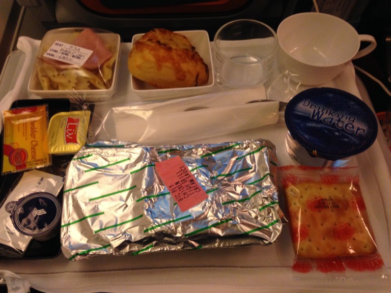 I manage to sleep on and off over the course of the remainder of the flight and skip breakfast which according to the menu is Continental.