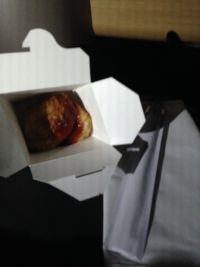 A couple of hours before landing, a pre-arrival snack is brought around. I go for the spinach, ricotta, and onion pastizzi with tomato relish. I finish it with a double Baileys on ice.
