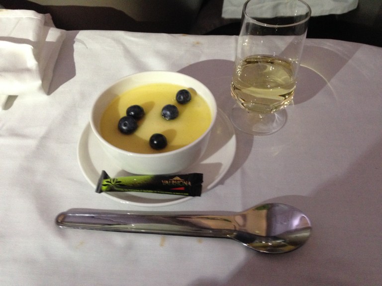 Around 30 minutes after take-off the hot towel and drinks service comes around. Having just been to the Hunter the previous weekend it was a no brainer to choose the 2014 Barossa Valley Shiraz – it was a great year.