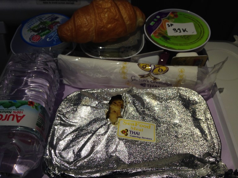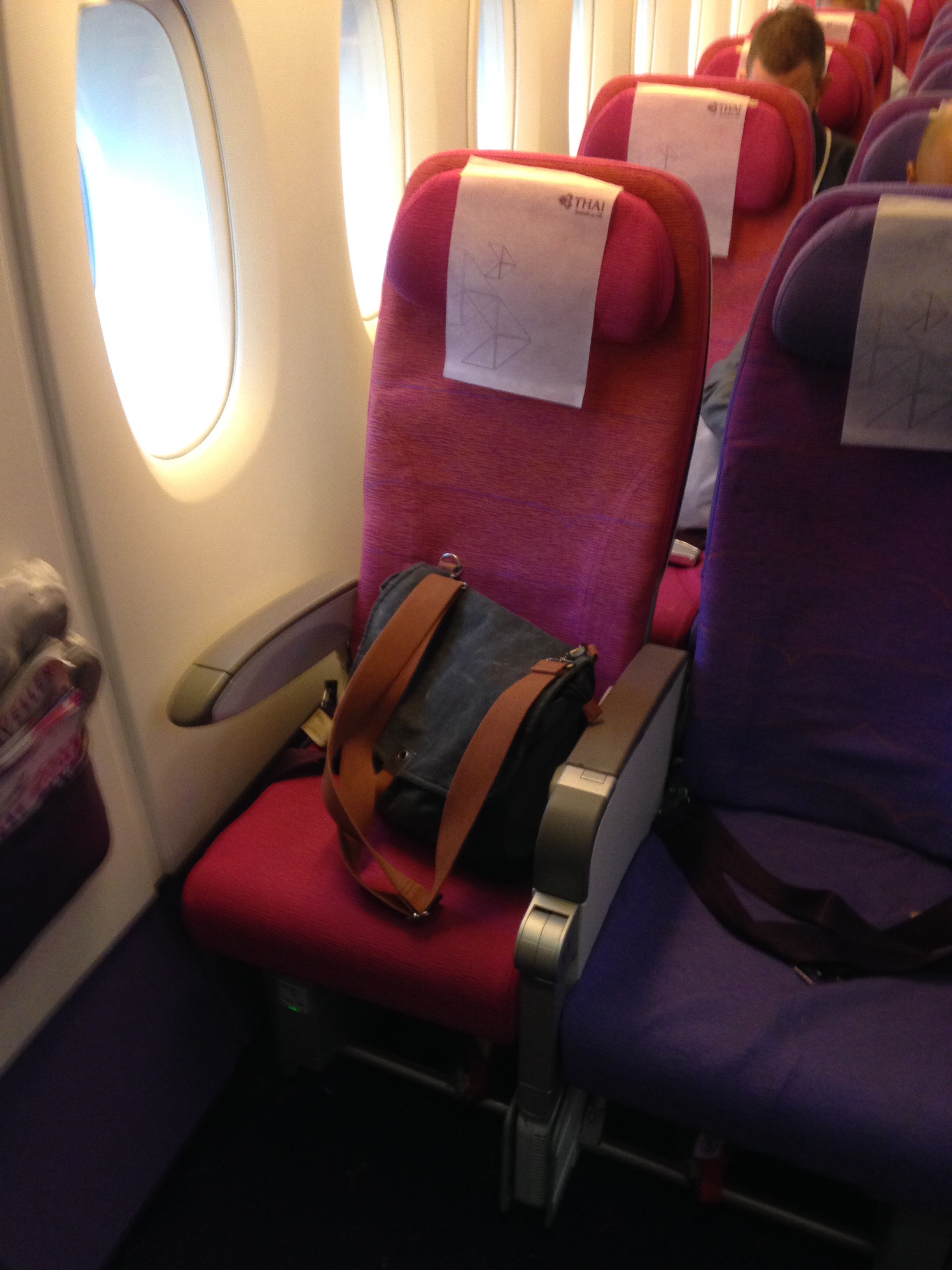 Even though I have no status (yet) with Thai Airways or Star Alliance, I am fortunate to be able to select an Emergency Exit row seat at the front of this Airbus A380 mammoth. My seat, 31K, is a window seat with nothing but space as large as my apartment in front of me. It has all the requisite sockets for charging and is quite comfortable.