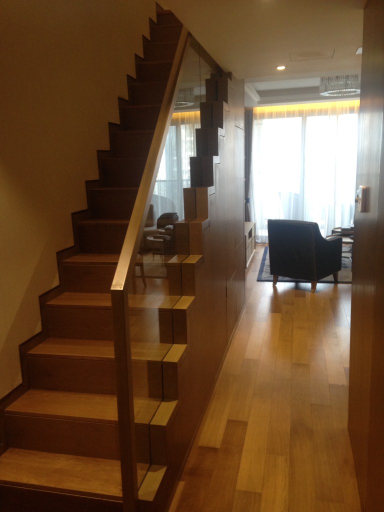 The room is huge – a duplex with combined lounge dining and fully equipped kitchen downstairs and bedroom and separate study upstairs.