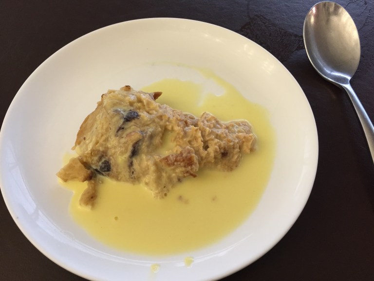 Strangely enough, the food is always the same – but today I go for the bread and butter pudding (just like Mum used to make) with vanilla sauce.