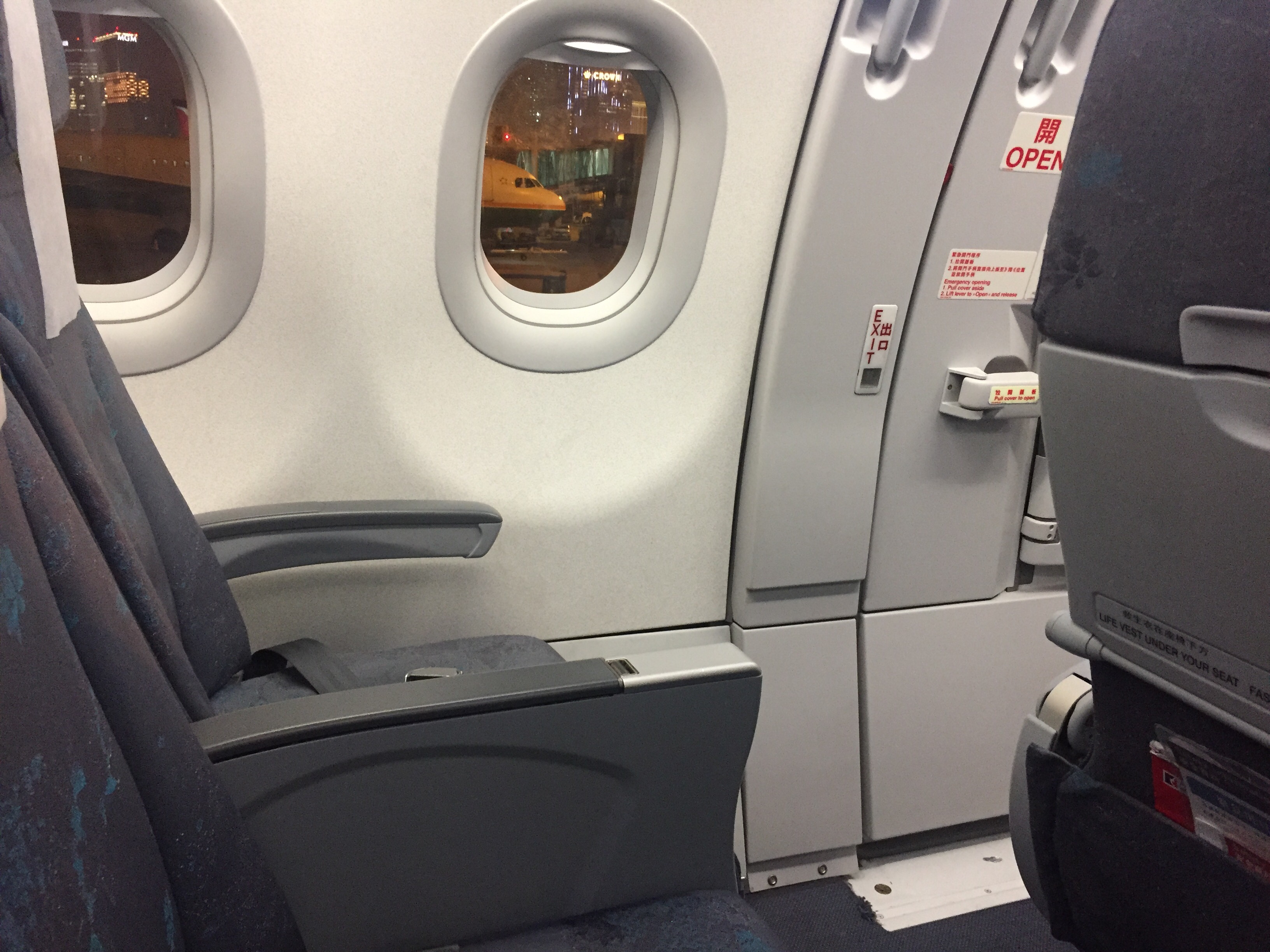 I am one seat behind the first row of economy in this unusually configured Airbus A321 bound back home to BKK. I say unusual as the first row of Economy is an emergency exit row of 2×2 seats meaning the window seats of row 9 (my row) have no seats in front. Bonus leg room to the lucky one who scored those seats!