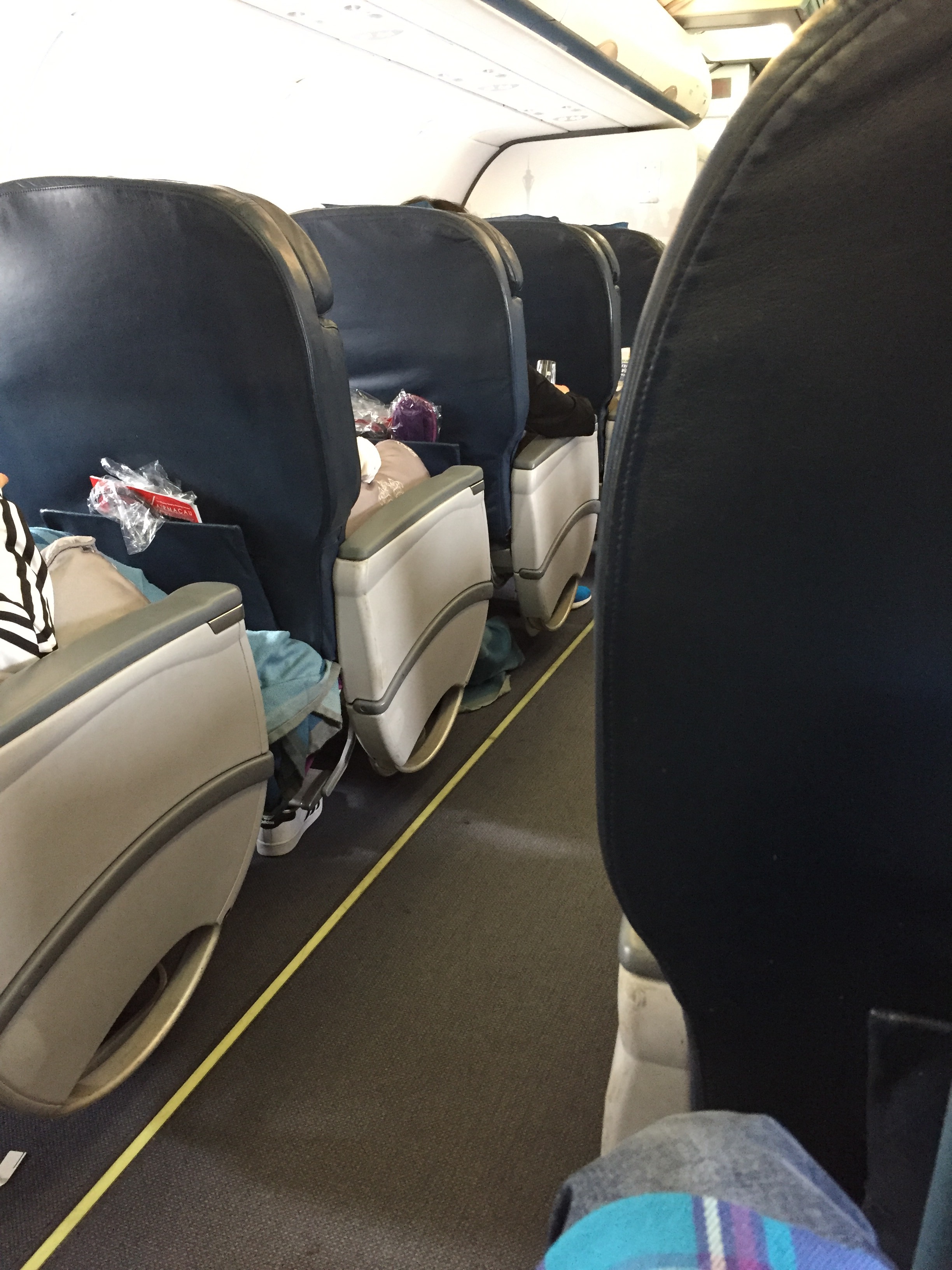 Despite the noise and seemingly shouting of the passengers boarding, the flight attendants are smart and professional, giving me a warm smile upon entering and even taking my jacket to hang up in a cupboard at to front.