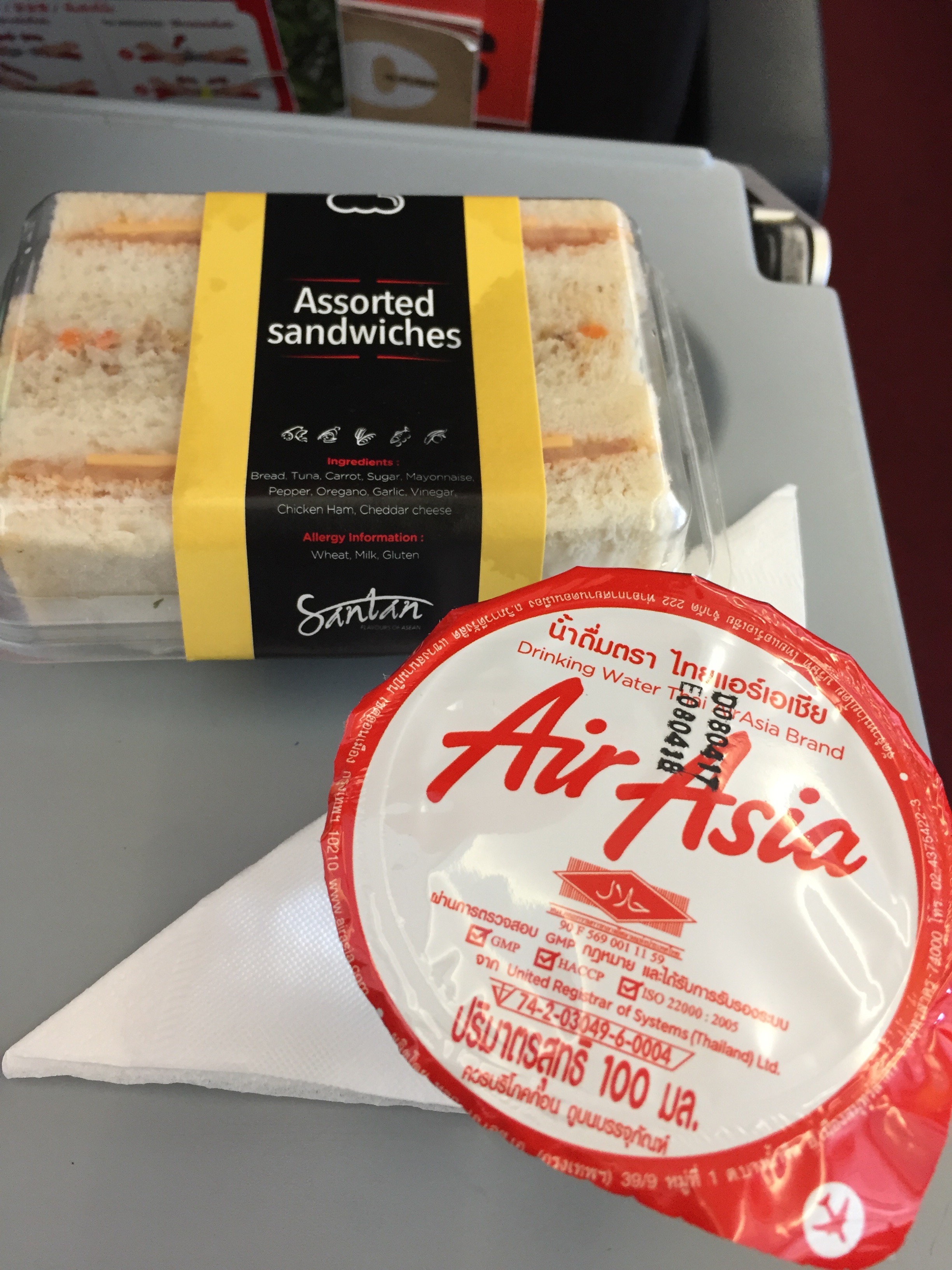 My ticket includes a meal which turns out to be a sandwich and a bottle of water.