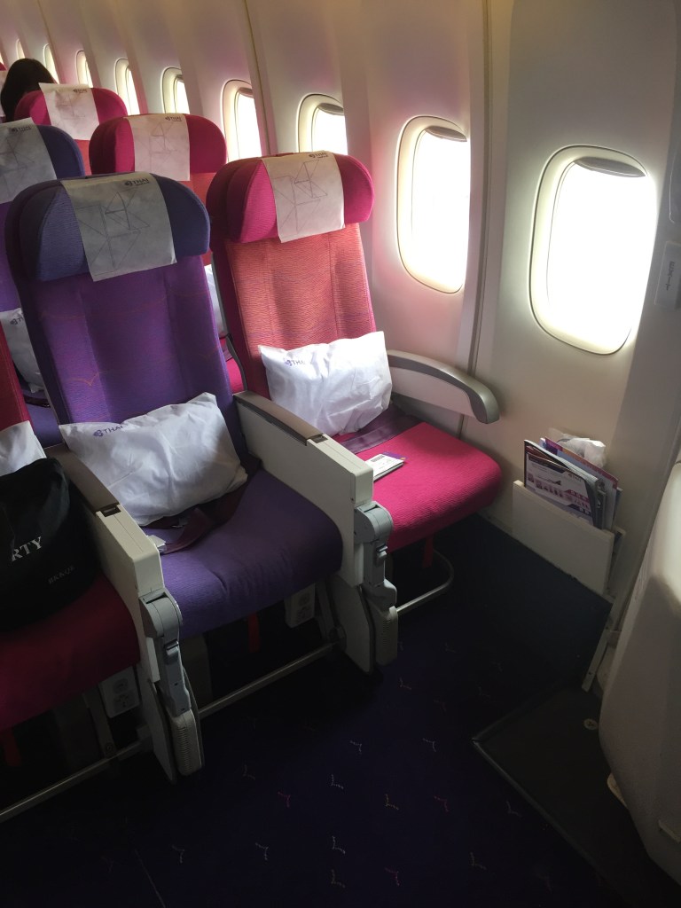 My original flight is the 7.05 pm bound for Bangkok, but as I have finished all that needs to be done in Hong Kong I arrive at the airport around 12pm in the hope that I can catch an earlier flight back home and I can! Thai Airways must have an undisclosed policy whereby if there is availability on a flight prior to your scheduled flight they will allow you on. At least that’s what I guess. And to sweeten the deal even more I am given an emergency exit seat, 53A – a window seat, on this Boeing 747-400 series aircraft.