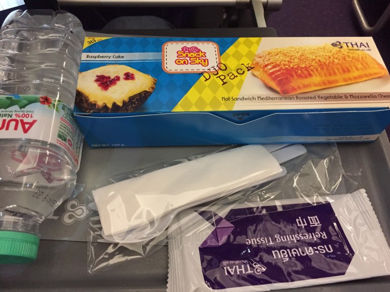 Actually in terms of service there isn’t much. No hot towel service which is pretty standard on Thai, a tiny meal, but tasty, and no entertainment.