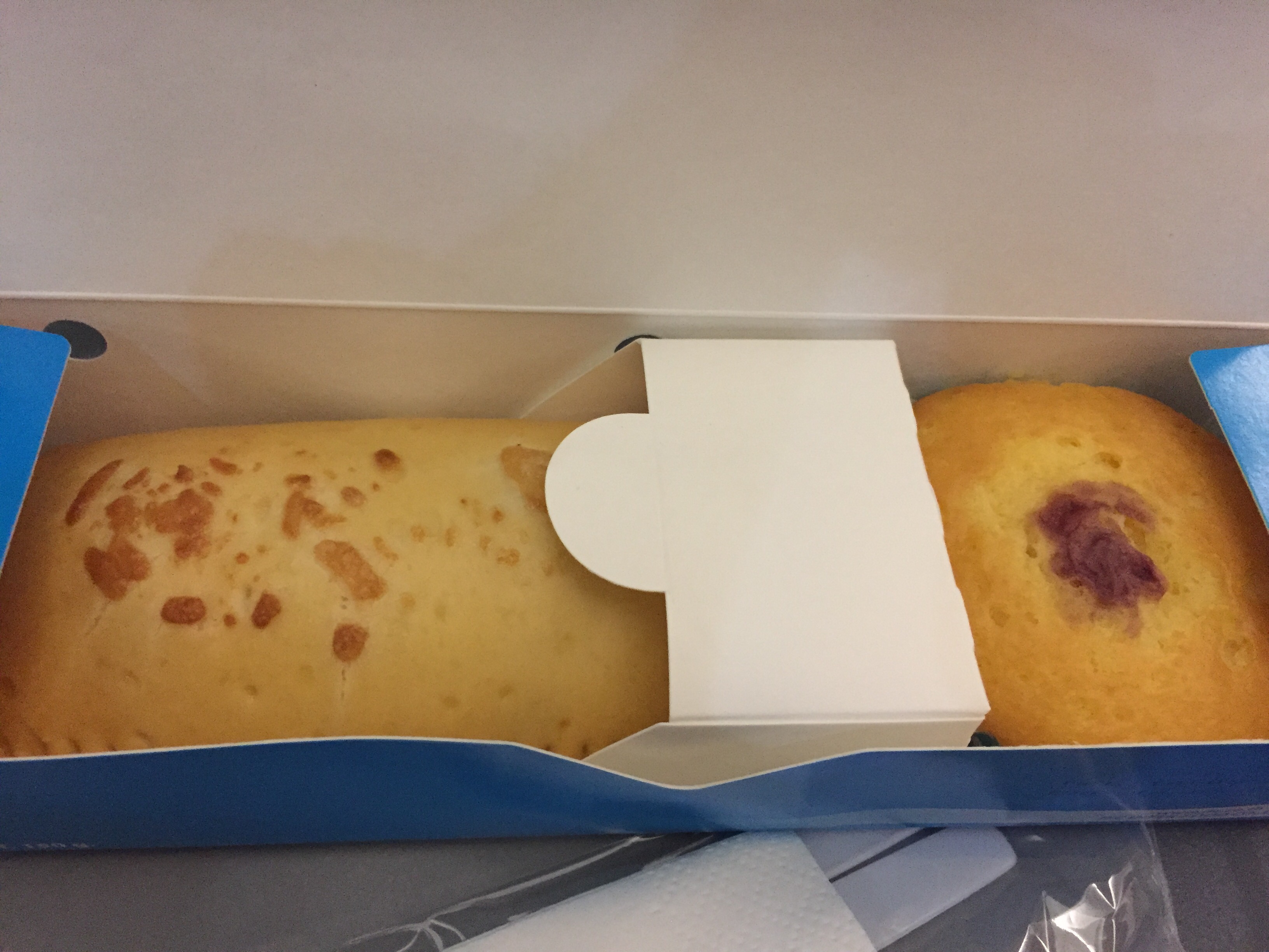 The meal is a ‘Duo Pack’ consisting of a ‘hot sandwich Mediterranean Vegetable & Mozzarella Cheese’ thing and a Raspberry cake (essentially a muffin), and a bottle of water. It’s OK but was expecting something different. During my meal, there is a bit of turbulence just as the drinks trolley is about to arrive. Soon after, the drink trolley comes around and I grab a glass of red. Phew.