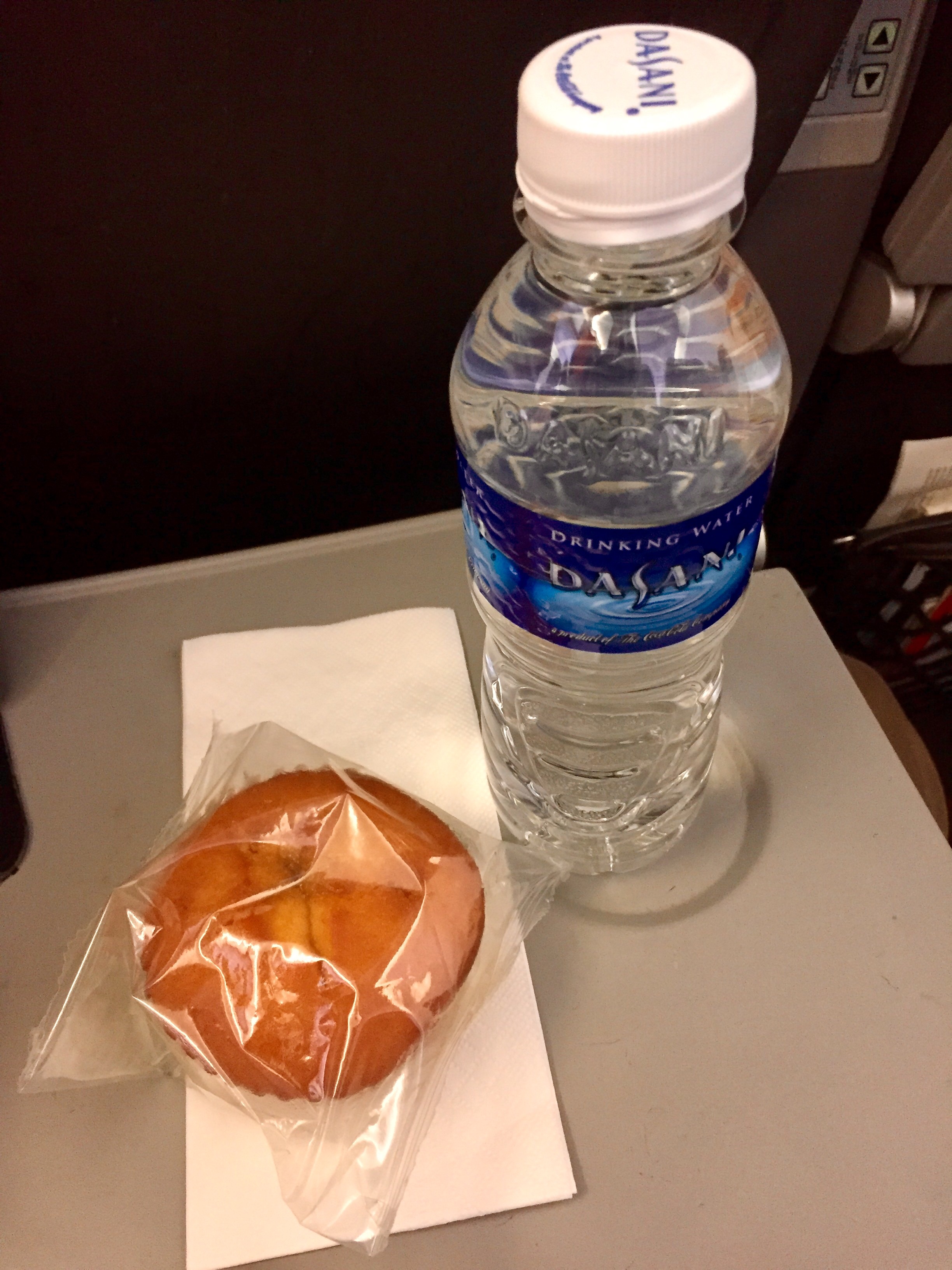 I have purchased a ‘Starter Plus’ fare which, among other small perks, includes a meal. My included ‘meal’ is a muffin and a bottle of water. Hmmm. Lucky I ate my breakfast in the lounge prior to boarding. There is a separate menu to purchase snacks on board but I refrain.
