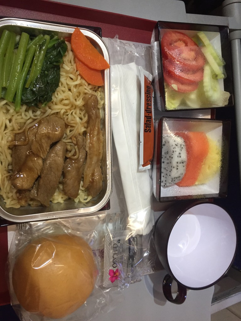 It is quite an empty flight – about 50% full/empty and I am lucky that I have 3 seats to myself to stretch out and relax for the 2.5 hour flight.