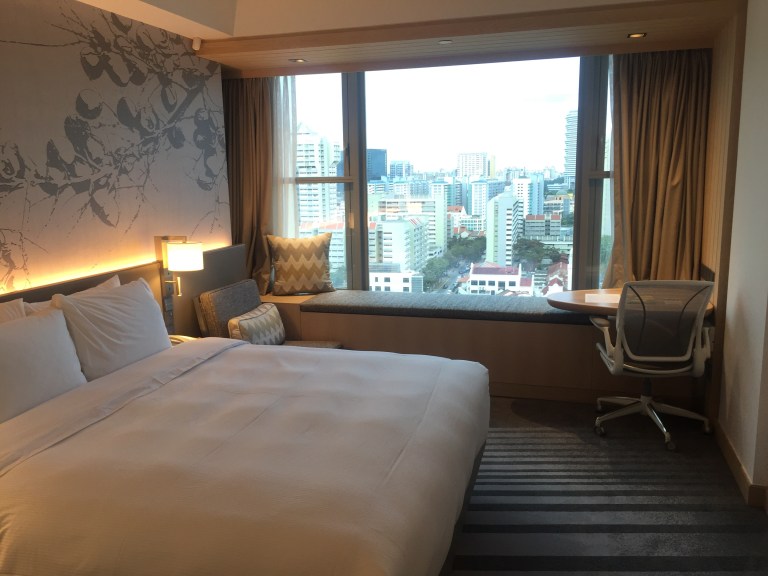 Prior to arriving at the hotel I do an online check-in via the Hhonors app and select my room and register for keyless entry. Yet upon arriving at 4pm I am told the room I chose is not available and I am given an alternative standard room on the 2nd floor. I challenge why this is the case and the Duty manager comes over, apologizes, and upgrades me to a king city view room on the 15th floor. The whole process takes about 15 mins despite the fact I did an online check-in.