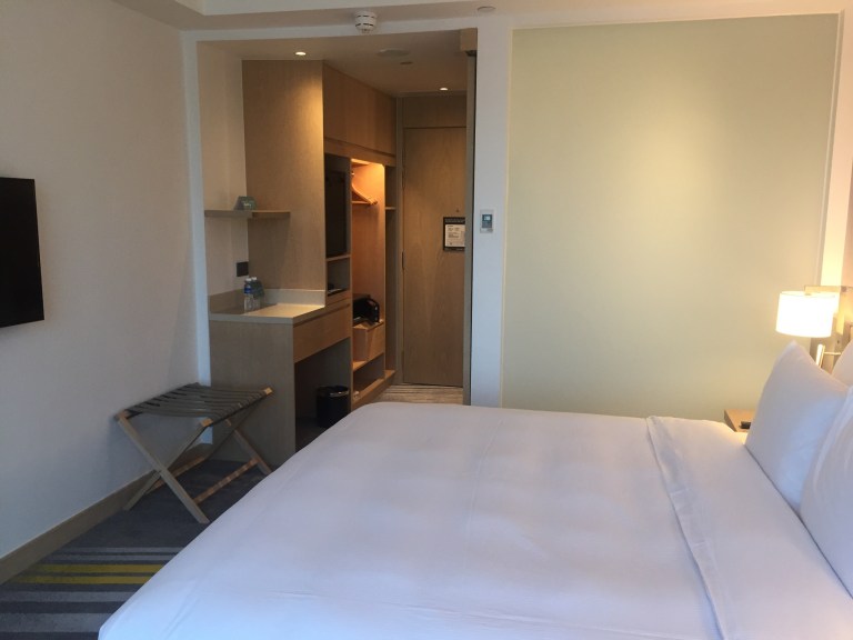 The room itself is spacious and with a good layout and amenities. There is no bath, but a compact shower and toilet in the bathroom. The hotel also features a pool on the 8th floor next to the restaurant, a pantry with essentials behind the reception desk, and a well equipped gym on the ground floor across from the elevators.