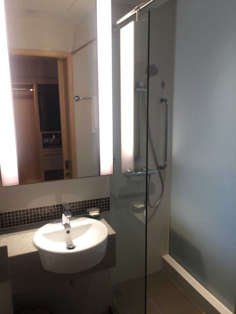 The room itself is spacious and with a good layout and amenities. There is no bath, but a compact shower and toilet in the bathroom. The hotel also features a pool on the 8th floor next to the restaurant, a pantry with essentials behind the reception desk, and a well equipped gym on the ground floor across from the elevators.