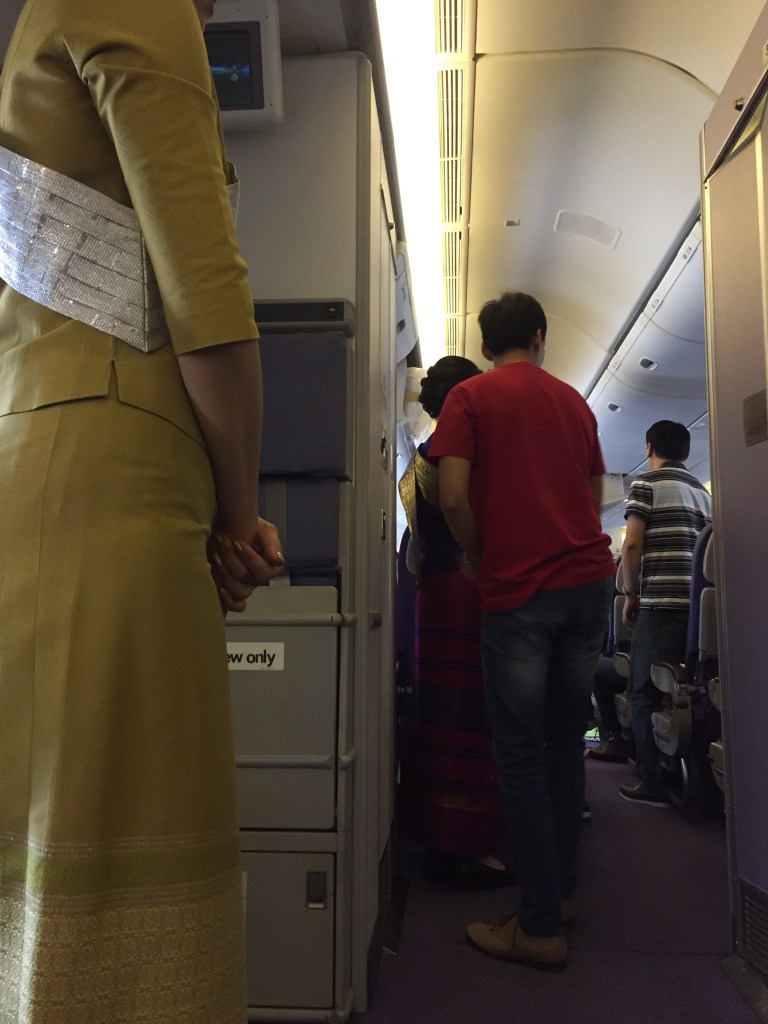 We arrive on time. But for some reason not at a gate, but via a waiting bus which is becoming more and more a regularity flying Thai Airlines. Time consuming and crowded. Dislike.