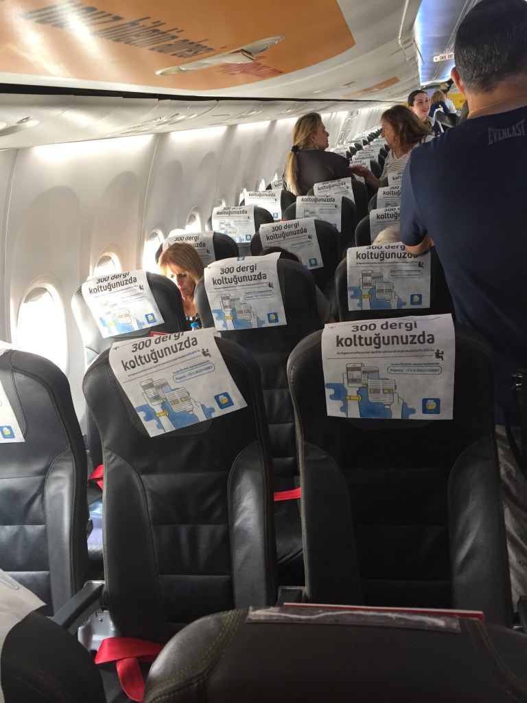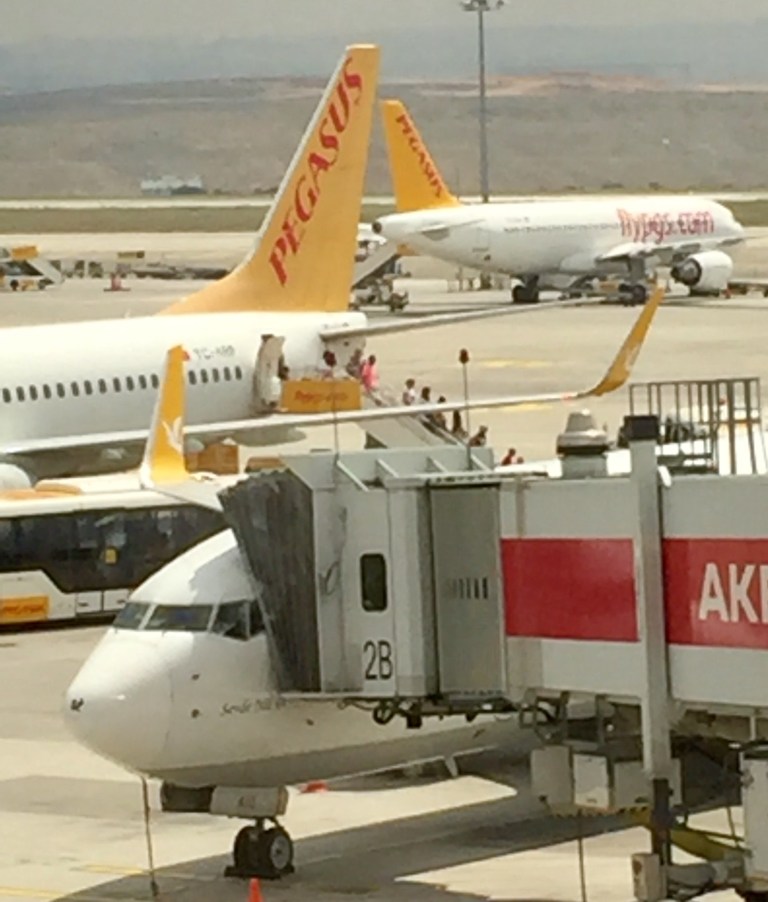 My return flight from Istanbul to Tel Aviv is in seat 7C on this Boeing 737-800 LCC Pegasus aircraft. Normally a seat so close to the front comes with a hefty charge but I simply ask at the check-in counter for an aisle seat close to the front and my boarding pass is handed over with a smile.