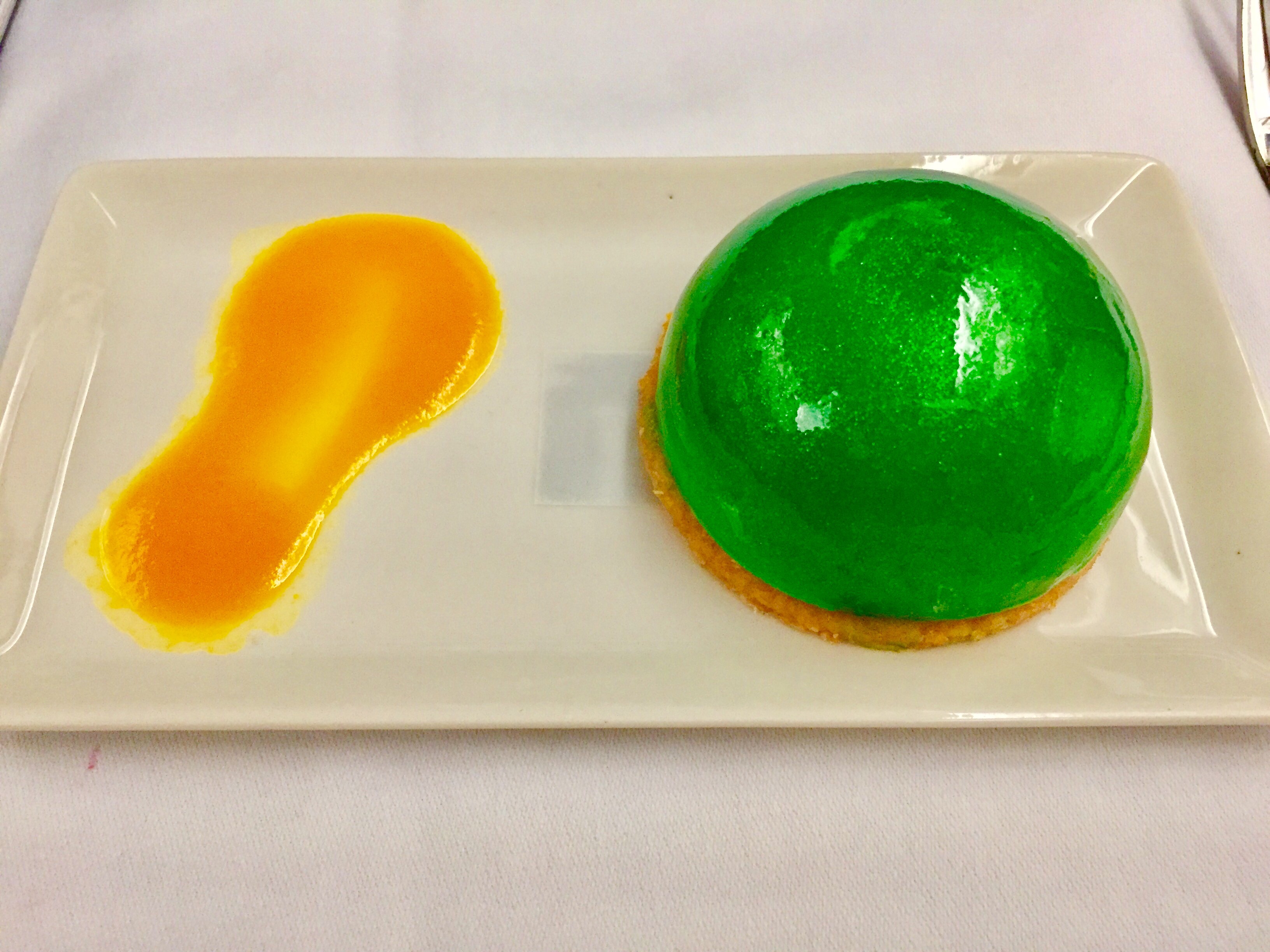 For dessert, I choose both options – the chocolate ice cream with vanilla sauce, AND the Calamansi-Rasperry Dome. This is followed by a plate of goat’s cheese, and then end with a Cafe Royal.