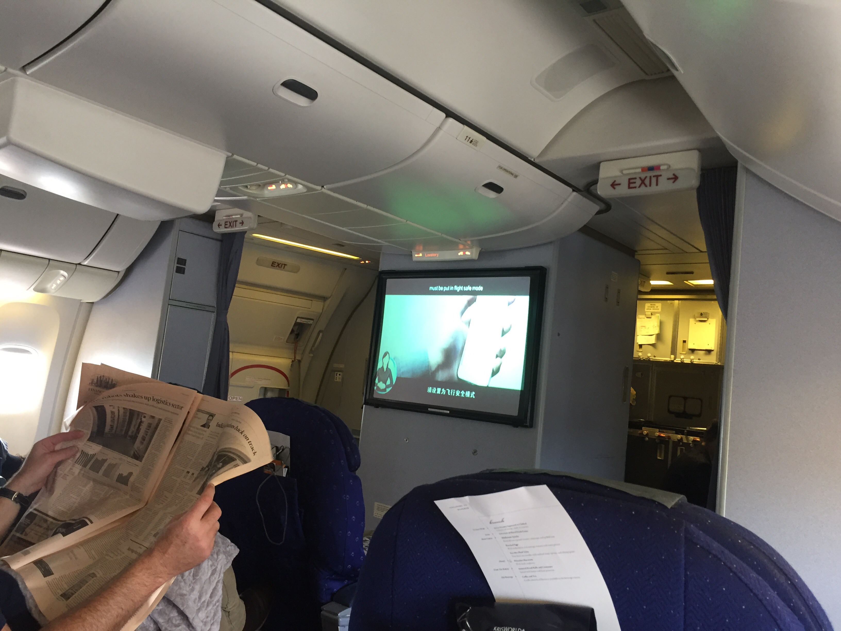 For the rest of the flight I watch a bit of TV from the in-seat monitor, and then nap in the recline position before we land.
